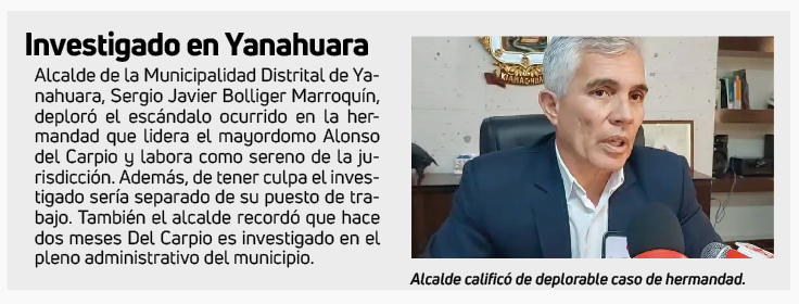 El mayordomo Del Carpio inició en el cargo en 2018 y fue reelegido el 2022, señaló que hoy miércoles hará su descargo.