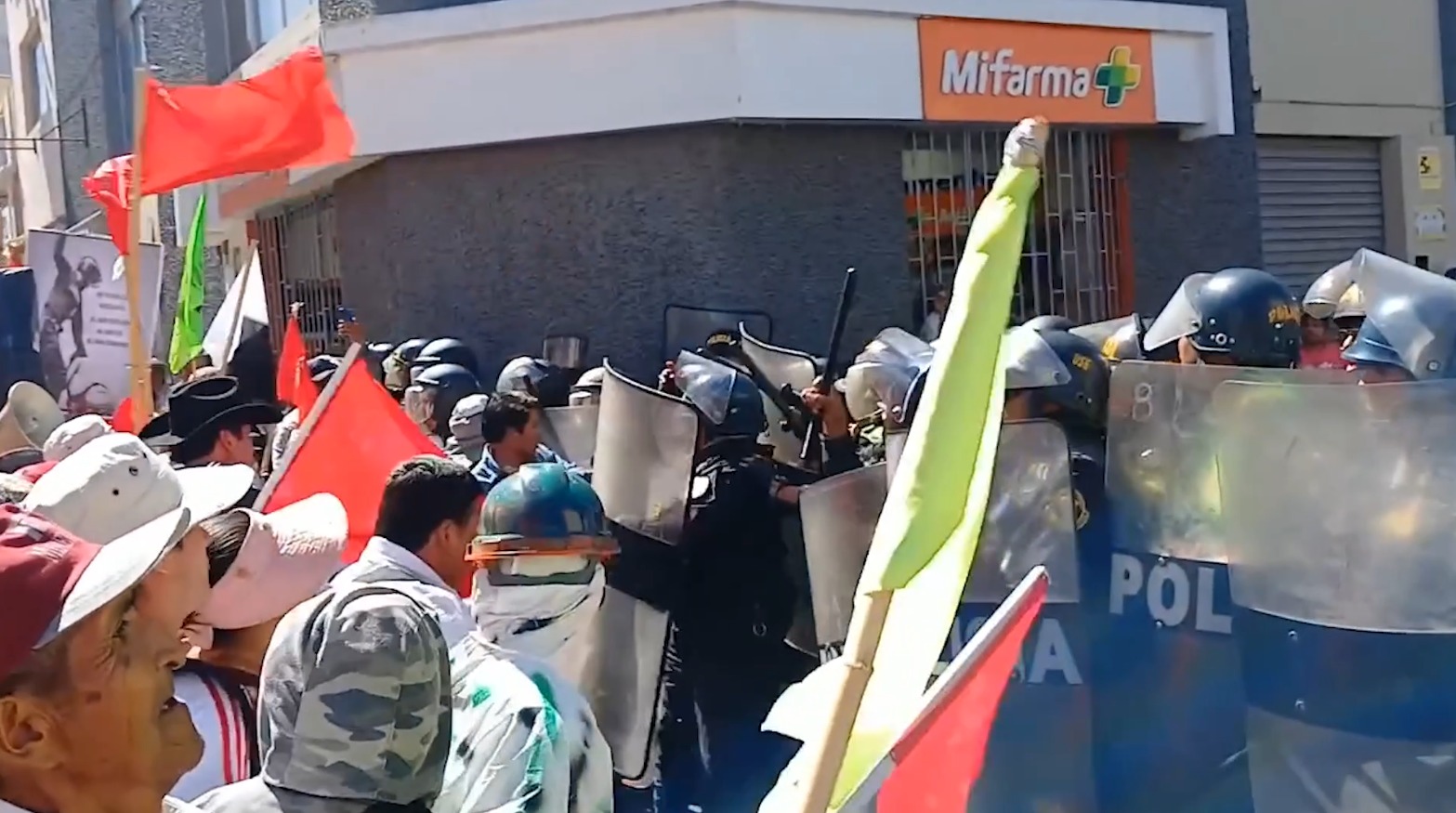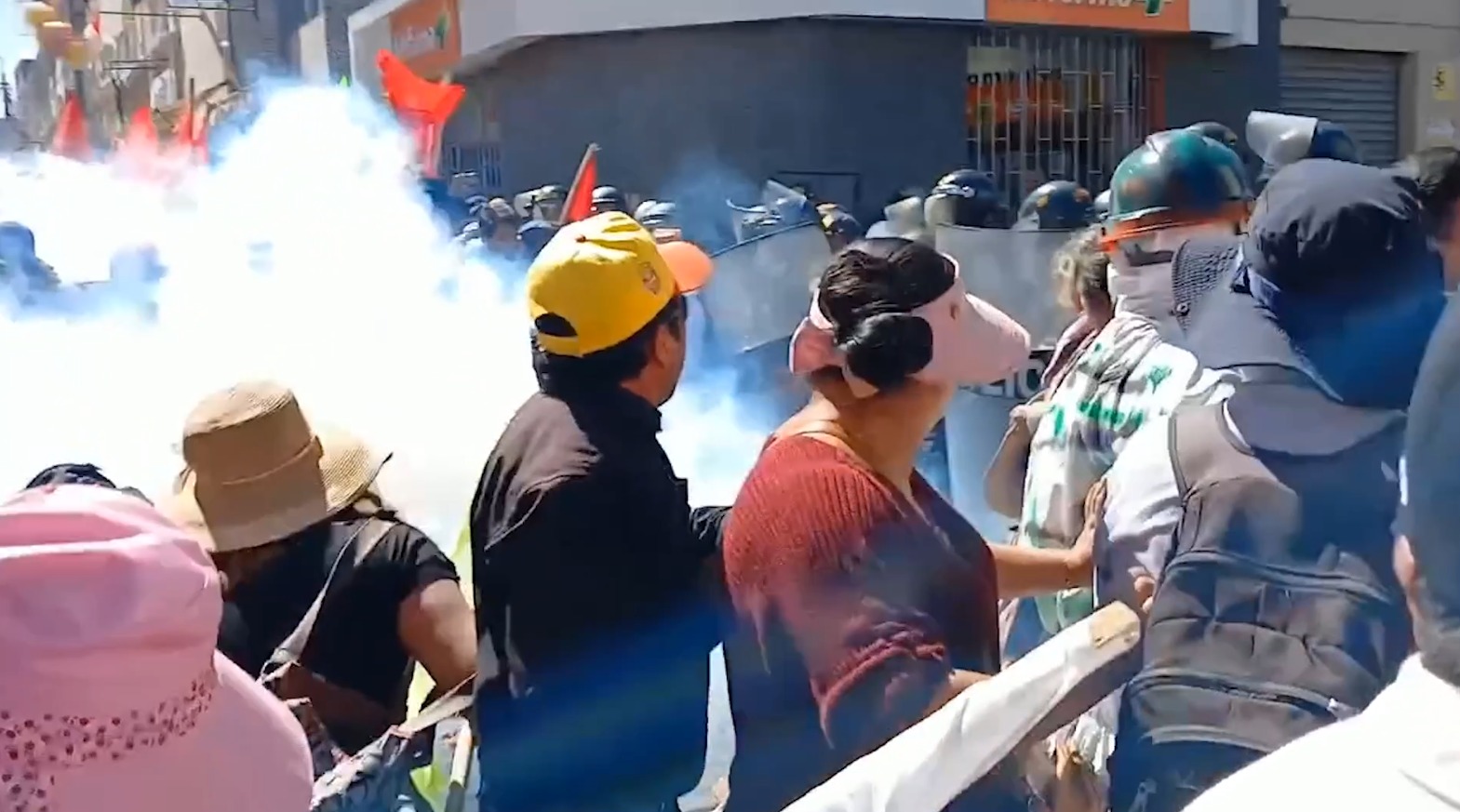 Un grupo de pobladores que participaban de la marcha convocada contra el gobierno de la presidenta Dina Boluarte se enfrentó a la Policía Nacional en el centro histórico de Arequipa.