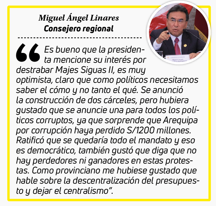 Critican promesas utópicas de Boluarte para Arequipa