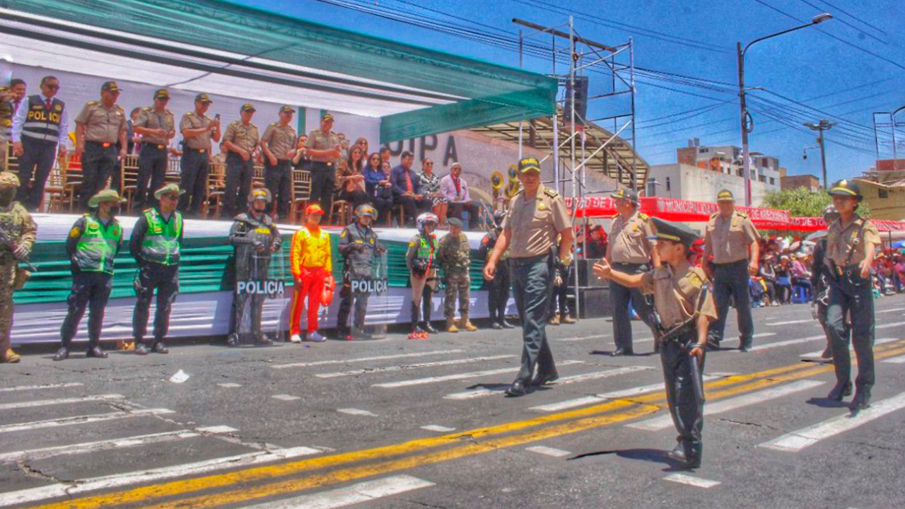 PASACALLE. Este 5 de diciembre la avenida Independencia fue escenario del pasacalle que contó con la participación de 14 agrupaciones. Por su lado, el jefe de la IX Macrepol, general PNP Miguel Cayetano Cuadros, recalcó que los efectivos del orden también defienden la cultura manteniendo los usos y costumbres. El evento se dio con varias presentaciones de danzas folclóricas, seguidas de carros alegóricos y escenificaciones de un operativo o cómo hacer una denuncia en caso de violencia y otros sucesos. “Somos policías, pueblo hecho ley”, acotó el general.