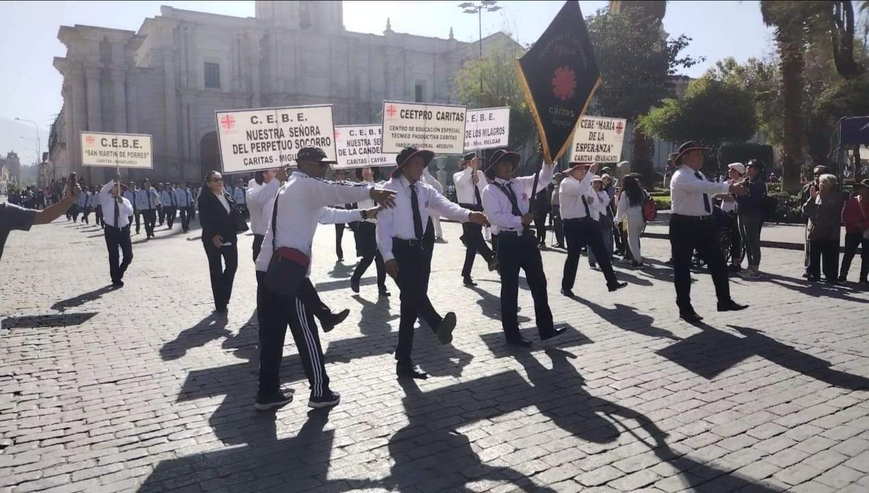 Marcharon con orgullo por el país donde nacieron. Un grupo de 300 niños con habilidades especiales -provenientes de siete Centros de Educación Básica Especial (CEBE)- salieron a la plaza de Armas para celebrar Fiestas Patrias.