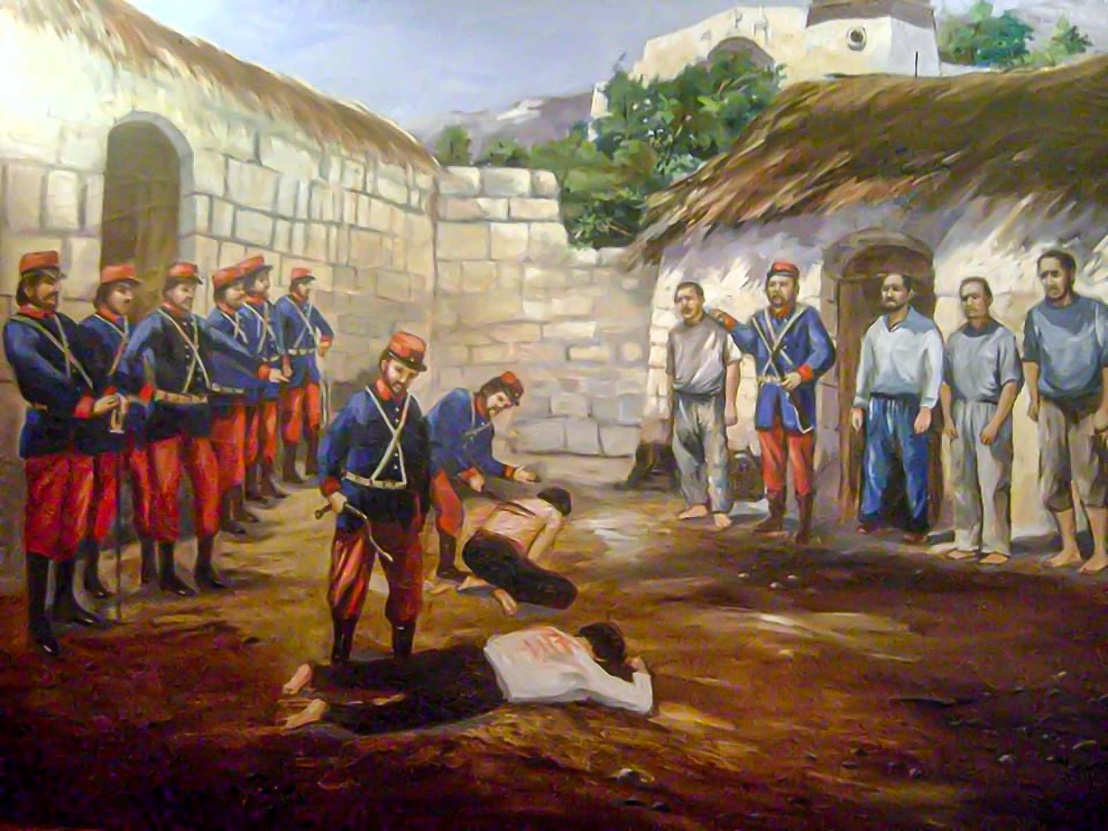 En conclusión fueron seis los destinados a morir, los 20 restantes condenados a recibir 100 azotes. El Tribunal Militar rápidamente redactó una sentencia, la cual procedieron a aplicar, luego de darle lectura. Ante la incrédula mirada del Párroco y del pueblo, arrojaron al suelo al ciudadano Mariano Oporto y lo flagelaron despiadadamente, lo mismo hicieron con Liborio Linares Portugal, a quien le reventaron los testículos.