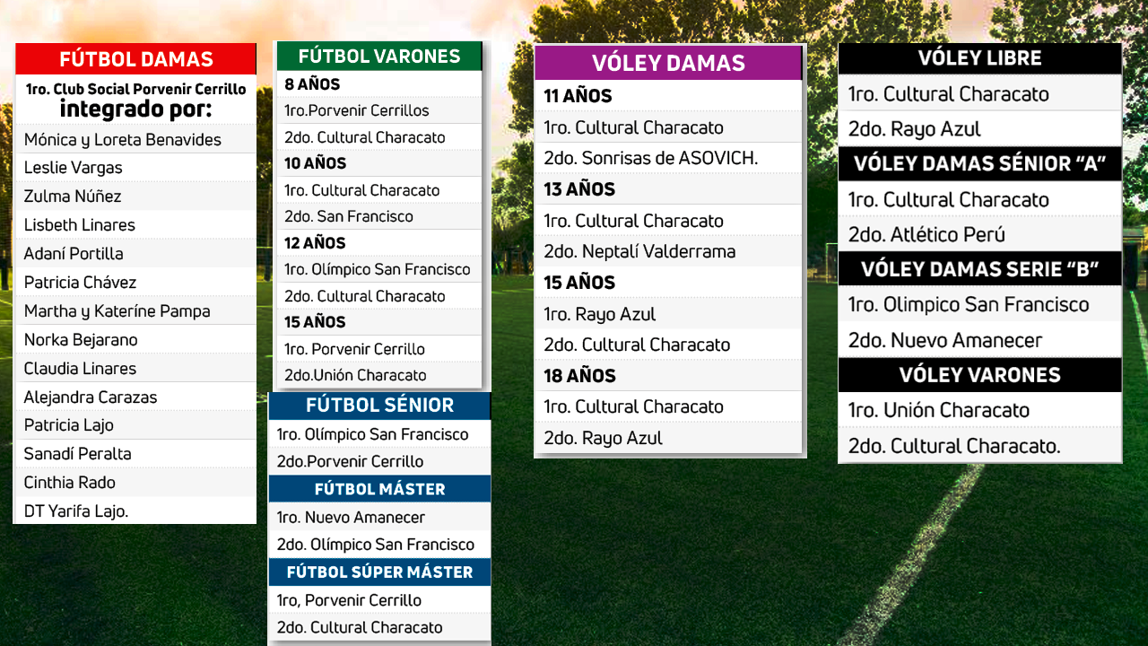 Llegaron a su fin las competencias de verano “Characato 2023”, en medio de la algarabía de los deportistas de todas las edades en damas y varones, quienes demostraron una vez más el amor a sus colores en las diferentes disciplinas.