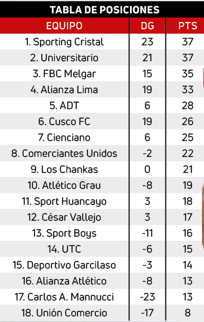 A su vez, ese día y en el mismo horario el ‘Dominó’ espera que Sporting Cristal pierda ante Comerciantes Unidos en el estadio Germán Contreras Jara de Cajabamba y lo propio en el Monumental Universitario frente a Los Chankas.
