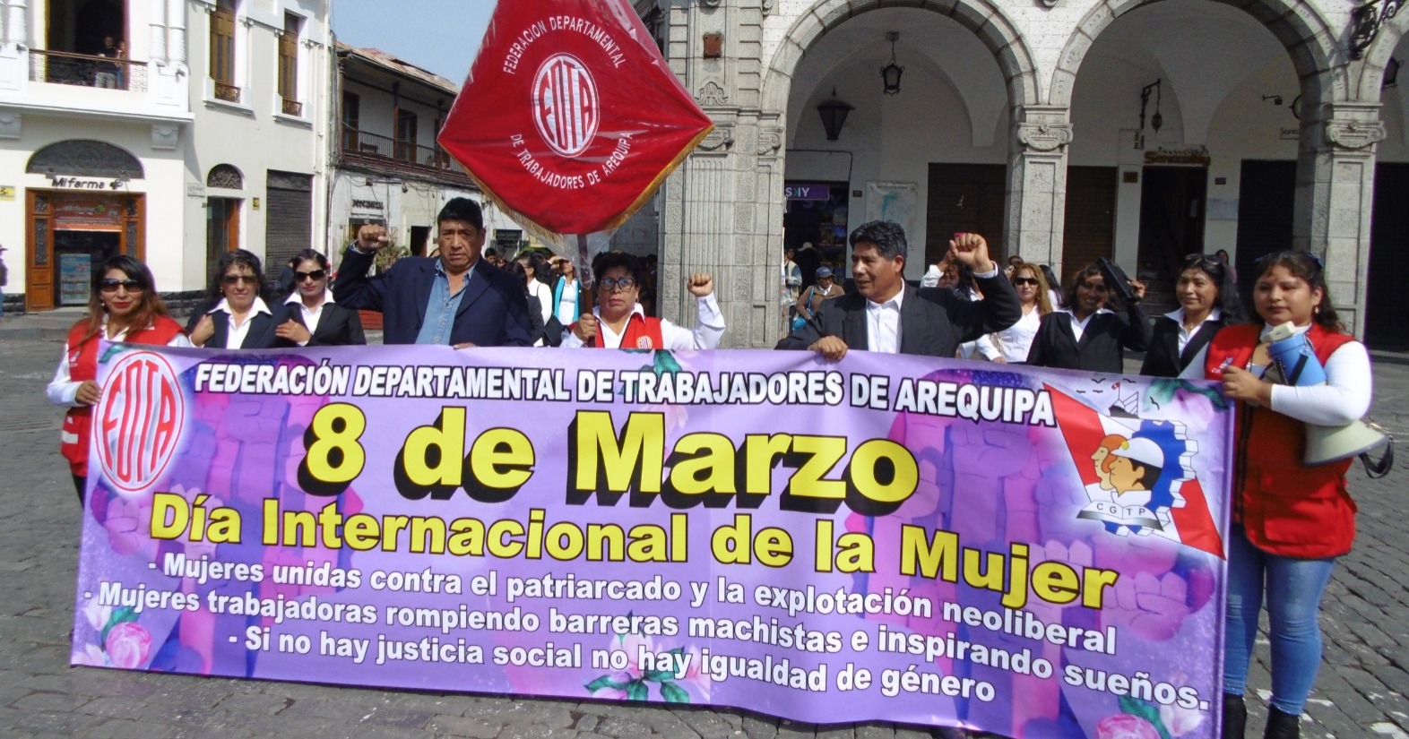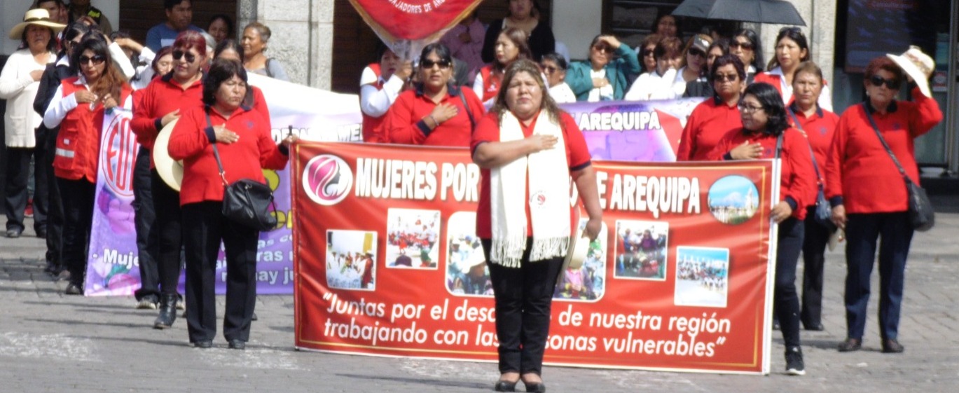 La mañana del 8 de marzo, tras el izamiento del Pabellón Nacional y la bandera de Arequipa en la plaza de Armas, por el Día Internacional de la Mujer, diversas organizaciones de damas arequipeñas participaron con mucho civismo del tradicional desfile al son de la banda de músicos del Ejército, conformada por las diversas unidades acantonadas en la ciudad.