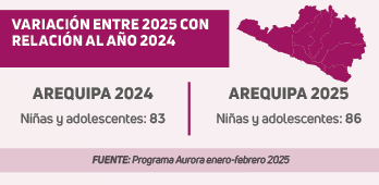 Además, Arequipa ocupa el segundo lugar en casos de abuso sexual a nivel nacional, solo después de Lima. Los datos del Programa Aurora revelan que en enero y febrero de 2025, los centros de emergencia mujer (CEM) de Arequipa atendieron 162 casos de violación sexual contra la mujer. (Ver infografía)