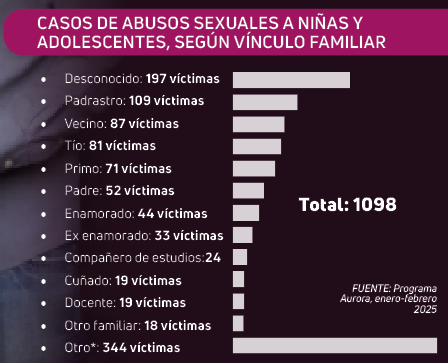 Las estadísticas de enero y febrero de 2025 revelan que el violador fueron padrastros (109 casos), tíos (81), vecinos (87), entre otros. (Ver infografía).