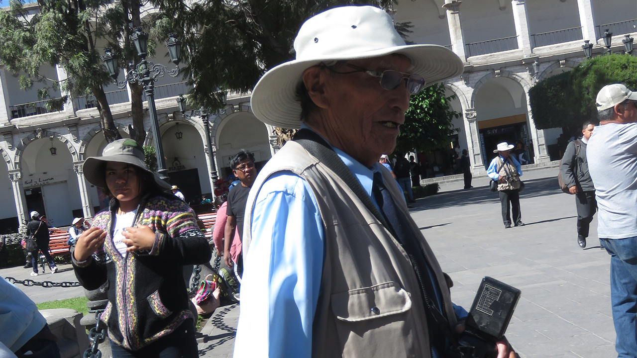 Todo arequipeño alguna vez  busco un fotógrafo para inmortalizar su imagen en la plaza de Armas y en ese lugar que es el corazón de Arequipa  está Eleuterio Condori,  quien toma fotos desde los  18 años. Conoce bien el negocio y ronda el Tuturutu para encontrar clientes. Él recuerda que en los años 90’  su oficio era un privilegio, cobraba cinco soles por dos imágenes, el dinero era suficiente para pagar los estudios de sus primeros tres hijos, pero con el tiempo tuvo que permanecer más horas e ir hasta los feriados para ganar más y sacar adelante a sus dos hijos restantes.  Ahora, pocas personas se acercan y le piden una foto, la mayoría usa celular, reniega más cuando cualquiera se llame fotógrafo. “Antes la fotografía era un arte”, dice.
