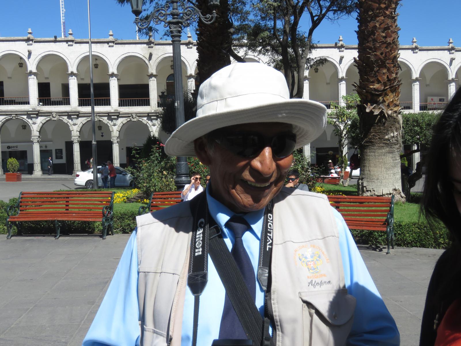 “Fotos, fotos, fotos”, grita Ignacio Ortiz (86 años), fotógrafo de la plaza de Armas desde los 21 años, él se aferra a la idea de que su oficio no desaparecerá. Ve a su cámara como su hijo, siempre la agarra con una mano para cerciorarse de que siga ahí. Don Ignacio no habla mucho de su familia pero se siente orgulloso de ellos. También reflexiona sobre  sus colegas, quienes ya son jubilados. “Ellos trabajaban con nosotros pero se fueron a otros  lados”, comenta despreocupado sin arrepentirse de estar ahí. Actualmente es el presidente de la asociación de fotógrafos y tuvo que ver como la cuarta parte de sus integrantes se fue. Recuerda como antes tenía más trabajo, como cumpleaños y hasta bodas, pero ahora solo se queda en la plaza.