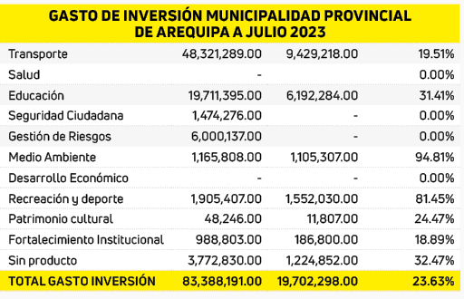 A más de medio año fiscal 2023, nuestras principales entidades públicas, tales como: el Gobierno Regional de Arequipa (GRA), la Municipalidad Provincial de Arequipa (MPA) y las comunas distritales, no presentan grandes logros de ejecución presupuestal referidos a proyectos de inversión, esto debido a la falta de planes estratégicos institucionales, así lo indicó el especialista en gestión pública y docente de la Universidad Católica San Pablo (UCSP), Pablo Salinas Valencia.