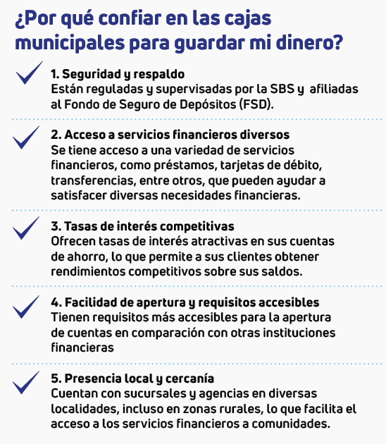 Recordemos que la ley de las cajas municipales obliga a estas entidades de microfinanzas ediles de entregar hasta el 50 % del total de utilidades, mientras que el 30 % va al Estado y lo restante a la caja. El dinero que se entrega al municipio es para que haga obras de beneficio social, de infraestructura y de desarrollo en la ciudad.