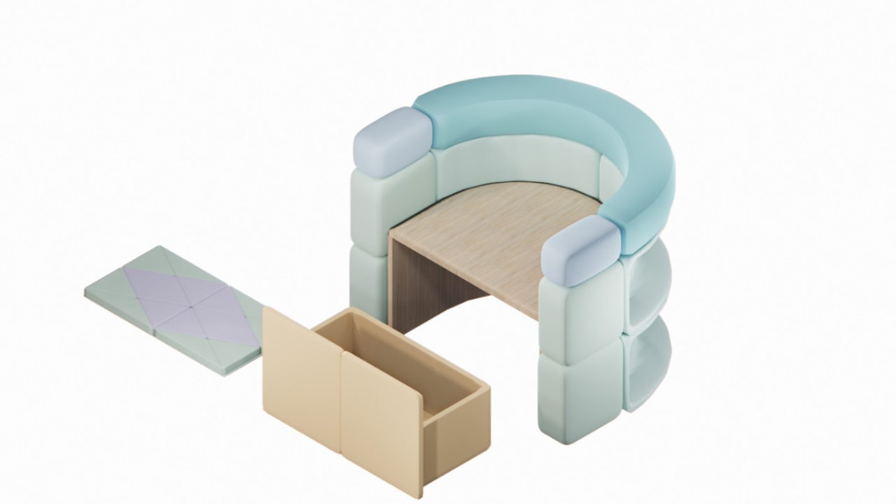 • Silla Crisálida: Inspirado en influencers con rasgos autistas,el diseño se basa en un capullo de resguardo para personas neurotípicas durante una etapa de sobre estimulación.