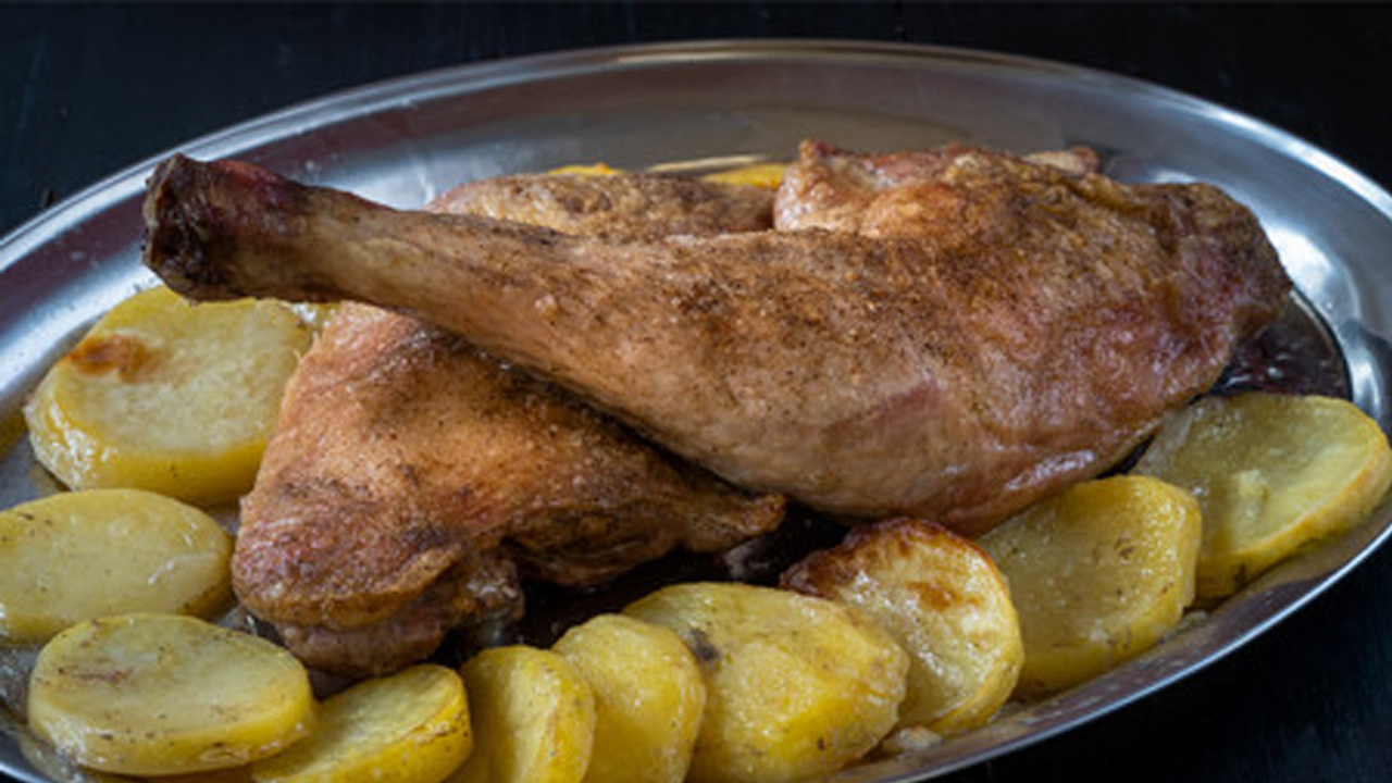 - Coloca el muslo de pavo sobre las papas, antes sazonar la carne con romero, sal y pimienta. Metes la carne al horno y dejar una hora.