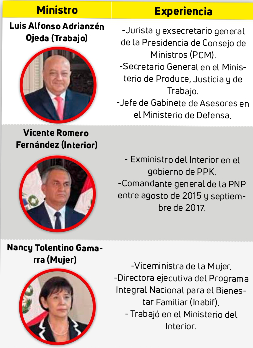 Vicente Romero Fernández quien es el nuevo titular del Interior y Nancy Tolentino Gamarra quien ahora dirige el Ministerio de la Mujer y Poblaciones Vulnerables.