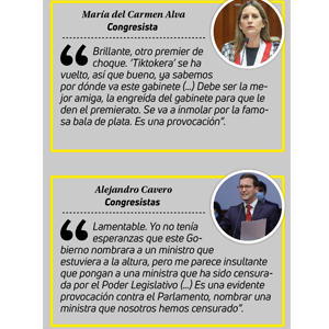 La exministra de las carteras de Cultura y Trabajo no tiene un historial positivo cuando ocupó los cargos y ahora es investigada por la Fiscalía, critican congresistas de oposición. No obstante, ello no fue impedimento para que sea la quinta presidenta del PCM en juramentar.