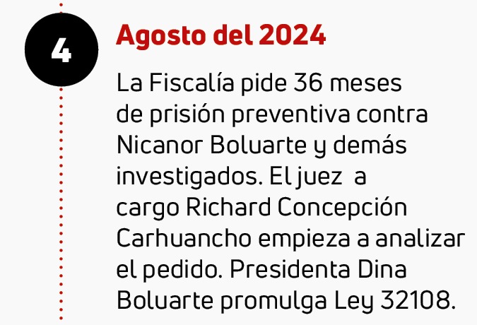 A ellos se sumó Nicanor Boluarte y Mateo Castañeda, este último sí logró librarse de la prisión preventiva en diciembre del 2024. Mientras que el hermano de la presidenta lo consiguió este 14 de enero del 2025.